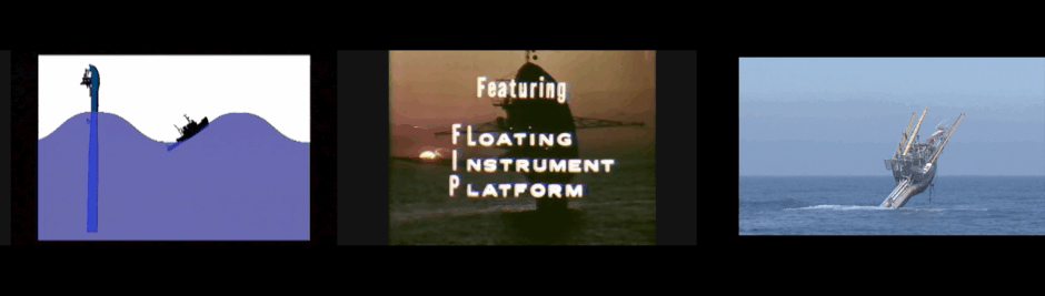 R/P FLIP R.I.P is an experimental video about the R/P FLIP, which stands for Research Platform FLoating Instrument Platform (1962-2023), the world-famous nautical rarity that flips 90 degrees to become a live-in buoy for studying the ocean. The FLIP was designed for stability to study acoustics in a turbulent ocean, yet ironically the interior is fluid, built for living both in horizontal and vertical orientations. In the artwork, performers activate the FLIP’s architecture as a playground for disorientation: floors become walls, and doors become holes. Intercut with military and oceanographic films, the FLIP film becomes a platform for conceptual flips: landlubbers encountering the alien world of the ocean, and of oceanography’s shift from militarism to ecology. Commissioned for the Getty-sponsored Southern California landmark show PST Art: Art & Science Collide, created by artist Rachel Mayeri, R/P FLIP R.I P. is presented as a three-channel video installation at the Birch Aquarium at Scripps Institute of Oceanography until August 2025.
